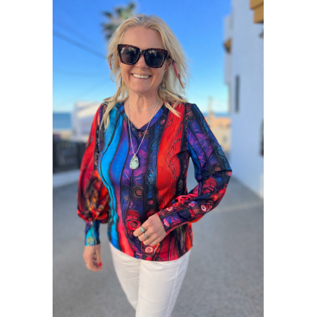 Prosta bluzka z wyraźnym akcentem w postaci finezyjnych rękawów typu buff.