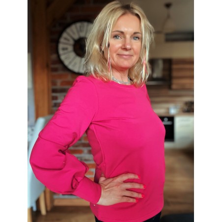 Bluzka buf - Fuksja okrągły dekolt