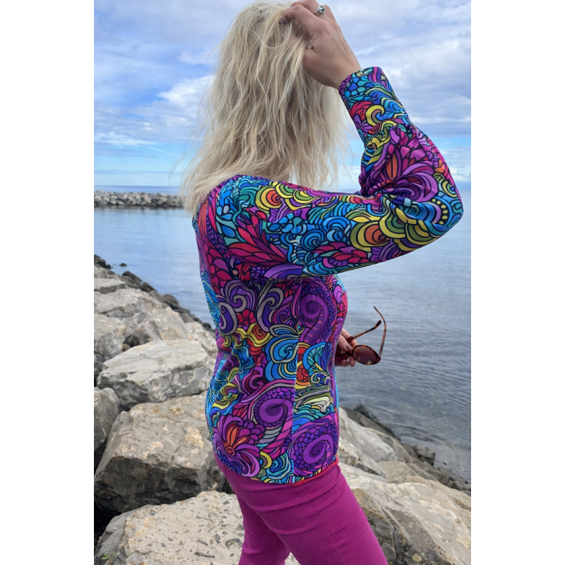Przenikające się barwy tworzą kompozycję, która przyciąga uwagę.
