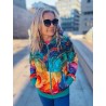 Wyraź się przez naszą bluzę Ta bluza to nie tylko ubranie, to manifestacja Twojej indywidualności. To świetny sposób na dodanie energii i charakteru każdej stylizacji. Otwórz drzwi nowym możliwościom stylu, zapraszając do swojej codzienności kolor, energię i radość dzięki tej niezwykłej kompozycji za każdym razem gdy założysz tę bluzę. Rekomendacje dotyczące prania: - na lewej stronie - do 30 stopni - bez płynu zmiękczającego do płukania - bez suszenia w suszarce Skład i atesty: - bawełna 95% - elastan 5% - certyfikat Oeko Tex Standart 100 – tekstylia godne zaufania Z czego szyjemy - dzianina dresowa pętelka o gramaturze 240g z najwyższej jakości przędzy bawełnianej - nadruk cyfrowy, intensywne kolory i trwałość - po dodatkowym zmiękczaniu dzianina jest wyjątkowo miękka w dotyku. Wykurcz do 5% Dla dzianin naturalnych takich jak bawełna, wiskoza czy bambus typowy i naturalny jest delikatny wykurcz podczas pierwszego prania. Warto o tym pamiętać przy wyborze odpowiedniego rozmiaru. Na zdjęciu rozmiar S/M przy wzroście 160cm i wymiarach 90/80/90 Wybierając rozmiar kieruj się wymiarami ubrania mierzonego na płasko. Możliwe różnice +/- 2cm
