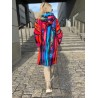 Do wyboru wykończenie w kolorze chaber tu lub fuksja w kolejnym produkcie. Płaszczyk/bluza uszyta jest z dresówki drapanej, z miękkim meszkiem od spodu. Nie ma podszewki, za wyjątkiem rękawów które są z podwójnej warstwy. Rękawy są dzięki temu regulowane w długości, ponieważ są podwijane.