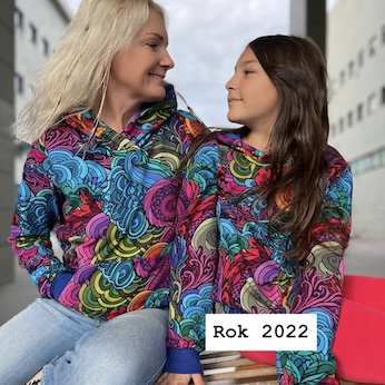 W tej przestrzeni zatrzymania, luzu i nicnierobienia zaczęły powstawać pierwsze ubrania. Szyłam wyłącznie dla siebie, bo nie mogłam takich kupić. Najpierw były spódnice z koła, chwilę później kolorowe, wzorzyste dresówki i pierwsza bluza.