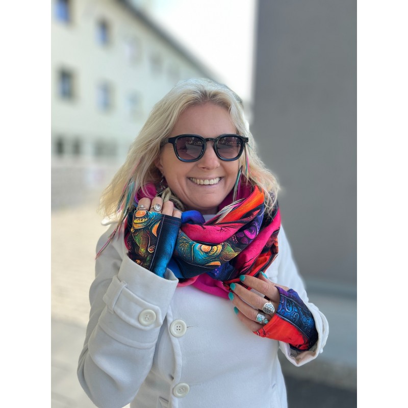 Wyraź się przez nasze ubrania Ten komin to nie tylko ubranie, to manifestacja Twojej indywidualności. To świetny sposób na dodanie energii i charakteru każdej stylizacji. Otwórz drzwi nowym możliwościom stylu, zapraszając do swojej codzienności kolor, energię i radość dzięki tej niezwykłej kompozycji za każdym razem gdy założysz ten komin. Rekomendacje dotyczące prania: - na lewej stronie - do 30 stopni - bez płynu zmiękczającego do płukania - bez suszenia w suszarce Skład i atesty: - bawełna 95% - elastan 5% - certyfikat Oeko Tex Standart 100 – tekstylia godne zaufania Z czego szyjemy - dzianina dresowa pętelka o gramaturze 240g z najwyższej jakości przędzy bawełnianej - nadruk cyfrowy, intensywne kolory i trwałość - po dodatkowym zmiękczaniu dzianina jest wyjątkowo miękka w dotyku.