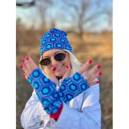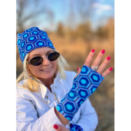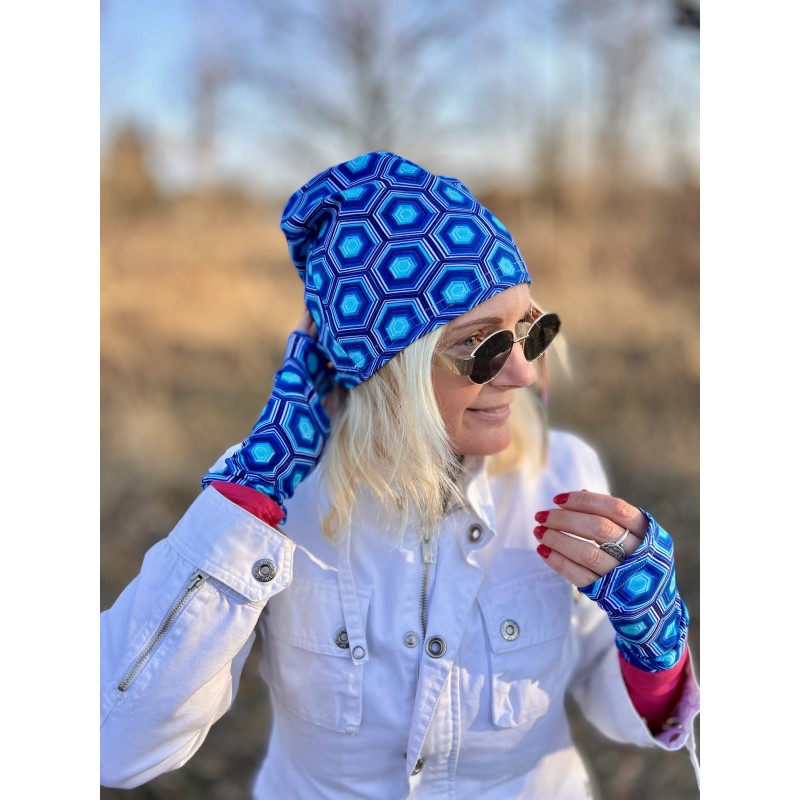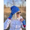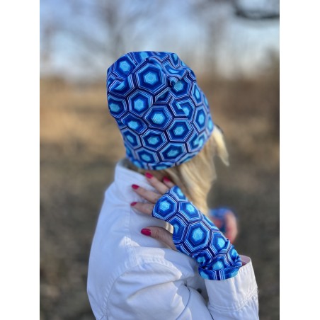 Wygodna czapka z jednej warstwy bawełnianej dresówki, do komletu można dodać komin i rękawiczki mitenki