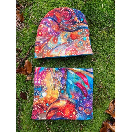Wzór może układać się inaczej na każdym kominie. Do kompletu są mitenki, rękawiczki bez palców i czapka