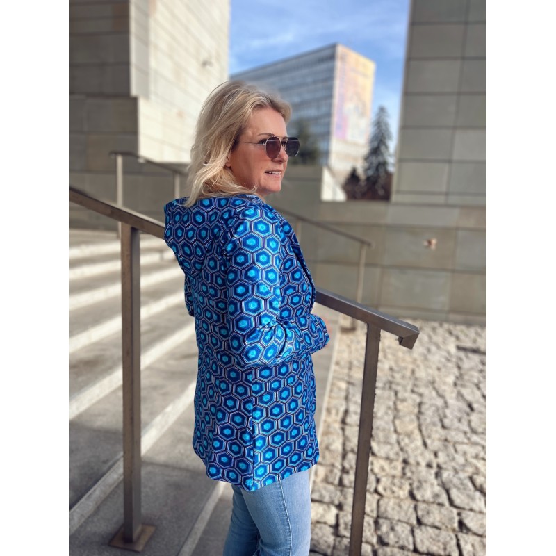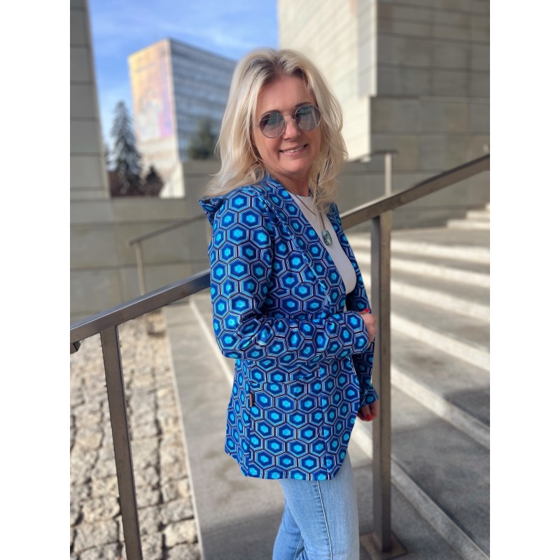 Sześciokąt niesie ze sobą przesłanie wewnętrznego spokoju, jedności z naturą i harmonijnego przepływu energii. W połączeniu z błękitem, turkusem i chabrem tworzy wzór, który działa jak lekki oddech – świeży, kojący i pełen jasności.