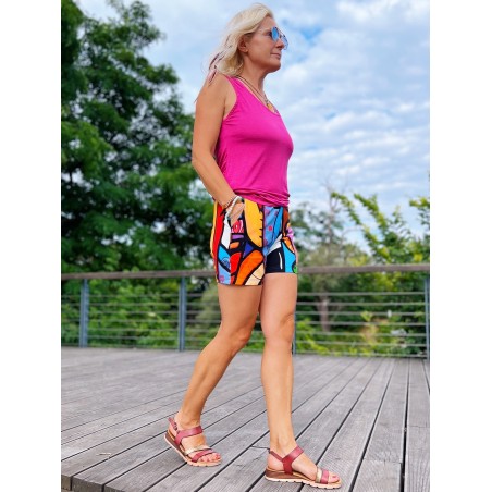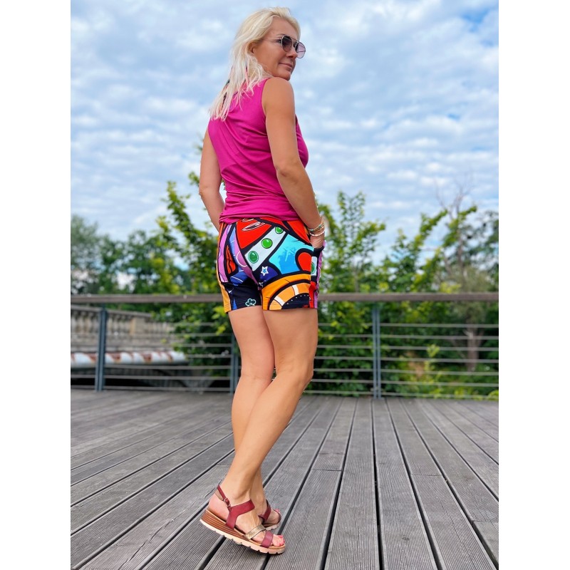 Wygodne spodenki z kieszeniami z boku i gumką w pasie.