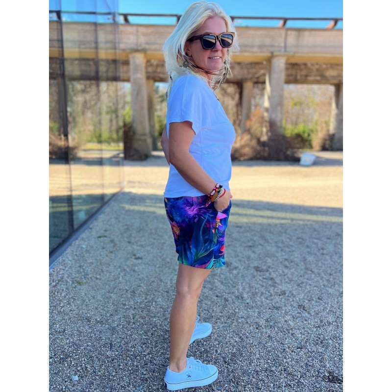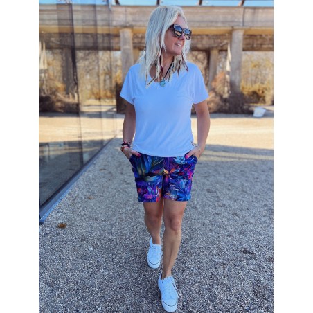 Wygodne spodenki z kieszeniami z boku i gumką w pasie. Do kompletu z tej samej kolekcji top i koszulka.