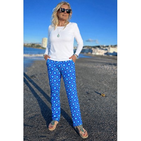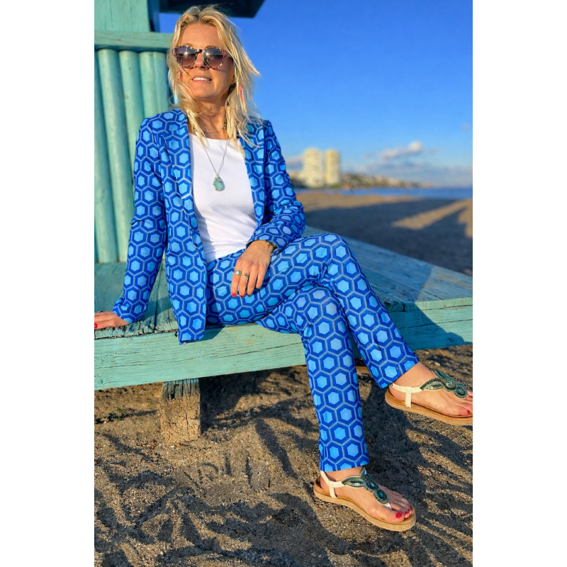 Sześciokąt niesie ze sobą przesłanie wewnętrznego spokoju, jedności z naturą i harmonijnego przepływu energii. W połączeniu z błękitem, turkusem i chabrem tworzy wzór, który działa jak lekki oddech – świeży, kojący i pełen jasności.